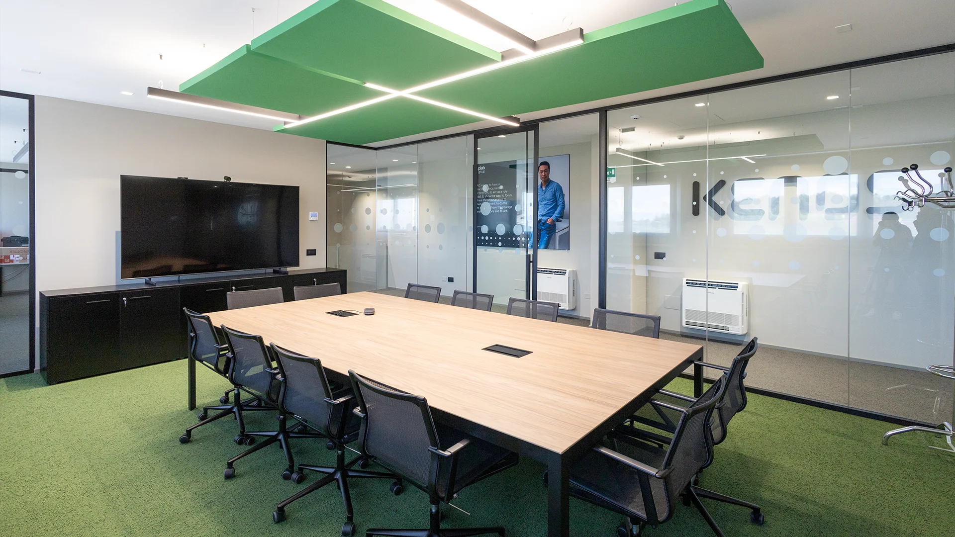 Moquette tecnica ad alte prestazioni, scelta per migliorare comfort acustico, qualità della camminata, igiene e facilità di manutenzione. Sistemi di illuminazione professionali e controsoffitti su misura completano l’intervento con soluzioni tecnologicamente avanzate.